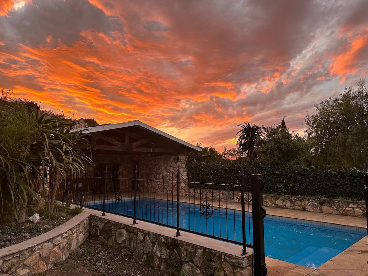 The rustic Moon Cabin is nestled in the centre of Barrydale which rests beneath the majestic spires of the Langeberg mountain range. It's 3 streets from the local restaurants, shops and pubs. The Cabin is a separate guest house on a large green plot with the main house far away enough for guest's privacy. The Cabin is designed to be 'modern rustic' with beautiful light, modern appliances, comfortable beds and quietude. We have wifi & a backup battery for running devices during loadshedding.