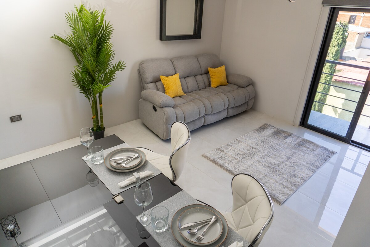 Ժամանակակից և հարմարավետ բնակարան ՝ Չիուահուայի Պարալ քաղաքի կենտրոնում գտնվող Մինա լա Պրիետային նայող կտուրով Բարի գալուստ Պարալի սրտում գտնվող մեր հարմարավետ և ընդարձակ բնակարան ։ Իդեալական է ընտանիքների, ընկերների կամ բիզնես ուղևորների համար ։ Այն առաջարկում է հարմարավետություն և հարմարավետություն մեկ տեղում ։