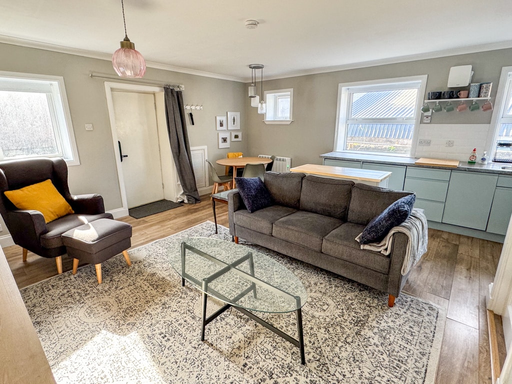 50thehighstreet is a spacious three-storey townhouse in the heart of Kingussie. Perfect, for exploring the Highlands. With five bedrooms and two bathrooms, it sleeps up to 12 guests, perfect for families and groups. Enjoy a Victorian-style lounge and a fully equipped kitchen with range cooker. There is also a patio with seating and a Kamado charcoal/wood BBQ. Free on-street bay parking outside. Pet friendly – one pet free, £10 per extra pet.