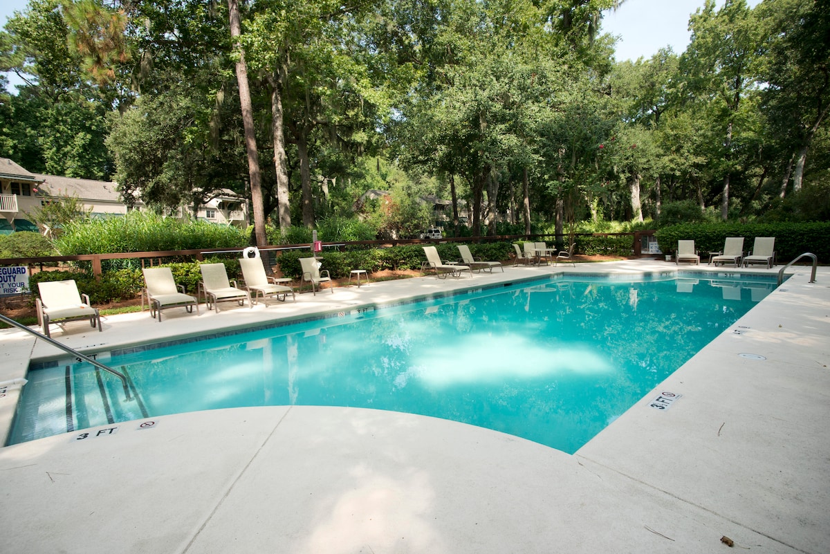 Համեցեք հանգստանալու և վայելեք Հիլթոն Հեդը Սաութ Ֆորեսթ Բիչում ՝ կղզու ամենասիրված հատվածում ։ Ուղևորվեք մեր անվճար հեծանիվներով ՝ արագ ուղևորվելու դեպի Coligny Plaza, որտեղ գտնվում են արտասովոր տեղական խանութներն ու ռեստորանները: Լողափն արագ քայլում է 2 կամ ավելի քիչ րոպե, իսկ լողավազանը ՝ դահլիճից ներքև ։ Մեր կոնդոմինիումը փոքր է, բայց կատարյալ է զույգի հանգստի կամ երեխաների հետ հիշարժան ուղևորության համար ։ Մենք ունենք այն ամենը, ինչ ձեզ հարկավոր է, որպեսզի ձեզ զգաք ինչպես տանը ՝ ամբողջ ծավալով խոհանոցային տեխնիկայով և լվացքի մեքենայով կամ չորանոցով, որը գտնվում է հարևանությամբ ։