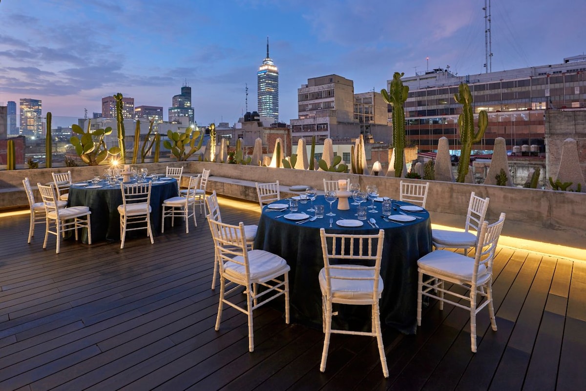 Ubicados en el corazón de la ciudad, en el Centro, podrás disfrutar de la cultura, historia y vida de la Ciudad de México. 🎶 Conciertos y eventos Autódromo Hermanos Rodríguez / Estadio GNP / Palacio de los Deportes – 9.5 km Estadio Azteca – 15.9 km (aprox. 40 min) 🎭 A unos minutos de: Palacio de Bellas Artes Teatro Metropólitan Zócalo Paseo de la Reforma Torre Latinoamericana Mercado de Artesanías La Ciudadela ✈️ Aeropuerto Internacional de la Ciudad de México – 9.3 km