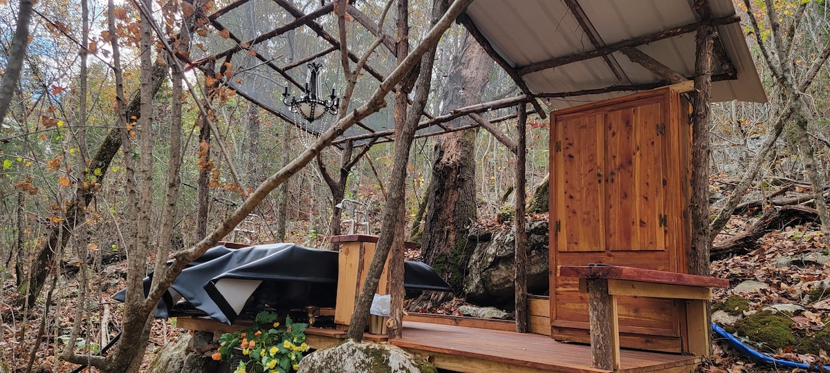 Սարալանջի ստուդիա, որը նախատեսված է զույգերի համար, որոնք ցանկանում են հանգստանալ։ Արթնացեք լեռների պանորամային տեսարաններով, հանգստացեք ձեր անձնական ջակուզիում և տեղավորվեք պրեմիում սպիտակեղենով California King չափսի մահճակալին։ Սեփականությունում կան մասնավոր արշավային արահետներ, իսկ Օկոյի գետի սպիտակ ջրերով ռաֆթինգի վայրն ու Փարքսվիլ լիճը գտնվում են ընդամենը մի քանի րոպե հեռավորության վրա։ Հանգիստ վայր, որը պարզ է, հարմարավետ և հատուկ նախատեսված է հանգստի համար։