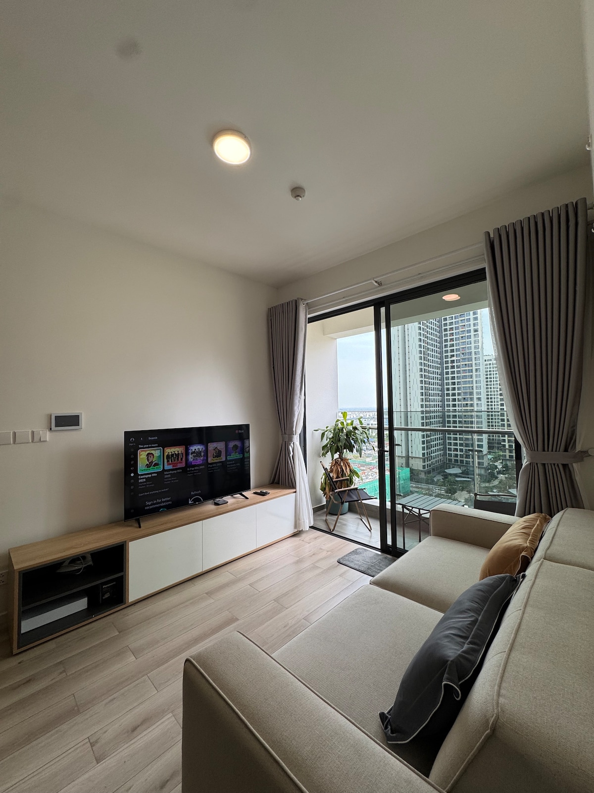Բարի գալուստ Սկանդի - ժամանակակից հանգիստ Վինհոմես Գրանդ Պարկում 🌿 Մեր 2BR բնակարանն ունի արագ Wi - Fi, հատուկ գրասեղան և ամբողջական խոհանոց ՝ երկարաժամկետ այցերի, հեռավար աշխատանքի կամ ընտանեկան հանգստի համար ✨ Անկախ այն բանից ՝ այստեղ եք աշխատանքի, երկարատև ընտանիքի համար, թե Սայգոնին տեղացու պես զգալու համար, այս ժամանակակից 2BR - ը պատրաստ է ողջունելու ձեզ☺️ 🔹 Նշում երկարաժամկետ այցերի համար ՝ 10 գիշերից ավելի տևողությամբ այցերի դեպքում էլեկտրաէներգիայի, ջրի և շենքի կառավարման վճարները գանձվում են առանձին ՝ ըստ օգտագործման