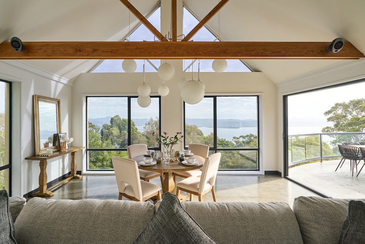Amazing 225 degree views over Hobart. Spacious quiet unit under the main house at the top of Sandy Bay. Separate private entrance. Quiet and warm homely experience. Great all day sun and views. Easy access to all areas of Hobart. Note there is NOT an OVEN but there is a portable induction cooktop and microwave. There is also an airfryer for your use. Free off and on street parking. The perfect base to explore Southern Tasmania!!