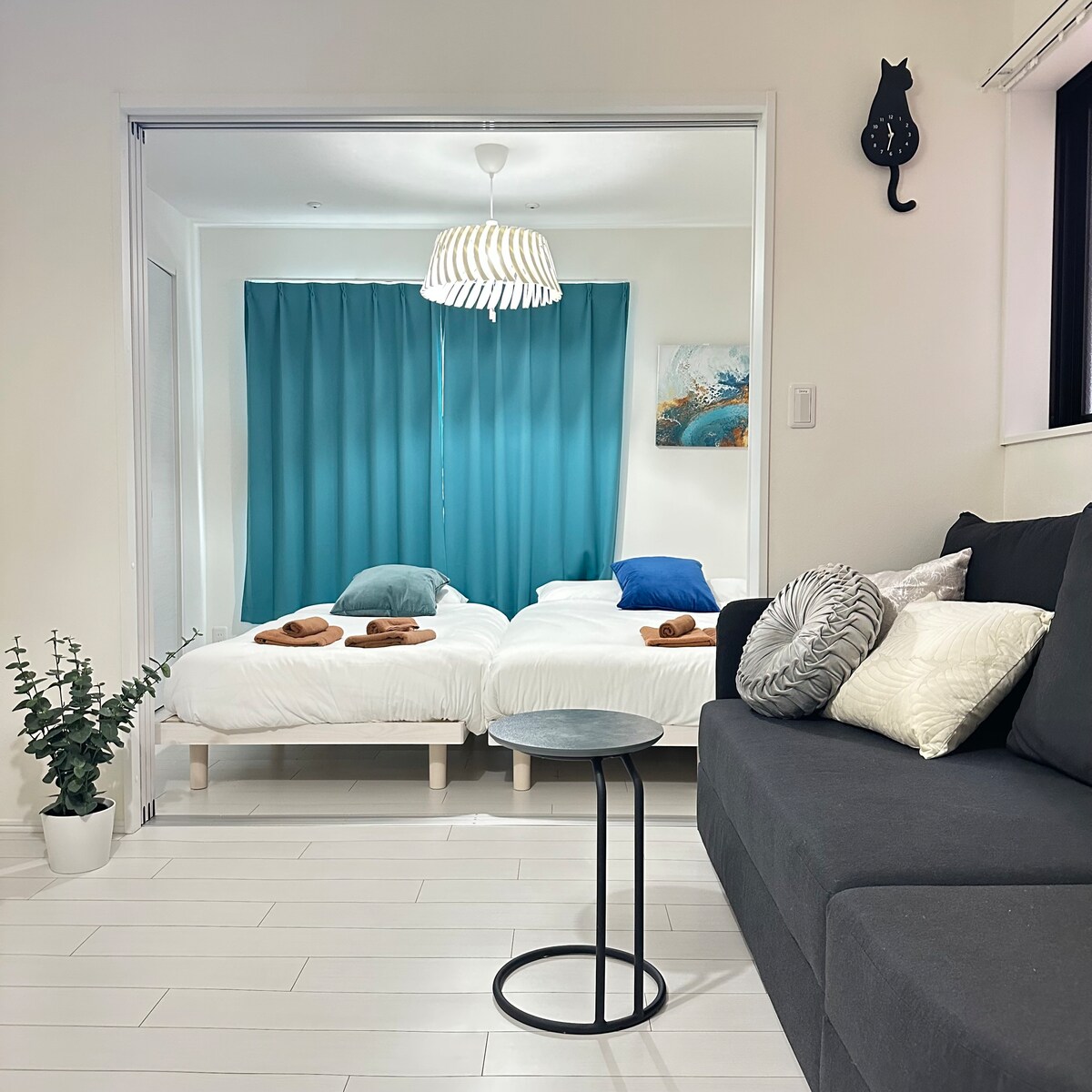 Enjoy your stay in a brand-new 36㎡ studio near Yokohama Station. Perfect for up to 4 guests with a double bed, single bed, and sofa bed. The space is bright, simple, and fully equipped with a kitchen, private bath, high-speed Wi-Fi, and a washer with dryer—ideal for families, friends, or business trips. Just 27 min direct to Shibuya by train. Easy access to Minato Mirai, Chinatown, Kamakura, and Zushi. Self check-in via smart lock. Great for long stays & workations.