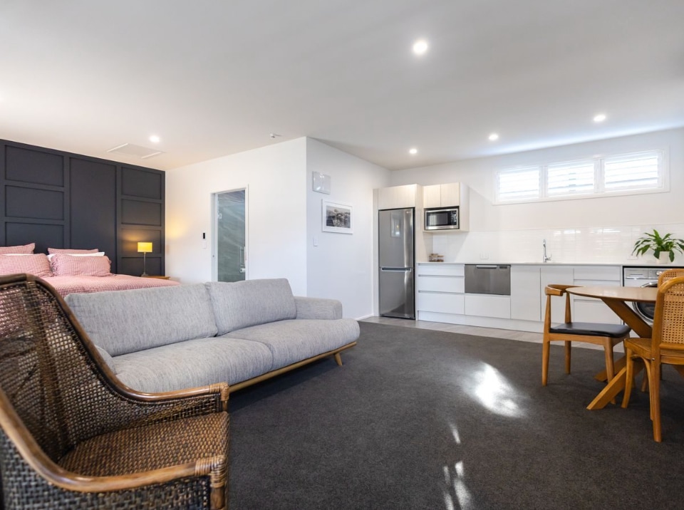 Newly renovated two-bedroom apartment in the heart of Hokitika, thoughtfully transformed from one of the town’s original bakeries. Just a 5–10 minute stroll to local restaurants and the beach. Enjoy a spacious lounge, fully equipped kitchen, laundry facilities, and outdoor patio. Sleeping includes one queen, two singles, and an optional fold-out stretcher perfect for families. Off street parking and convenient lockbox self check in provide flexibility for your arrival.