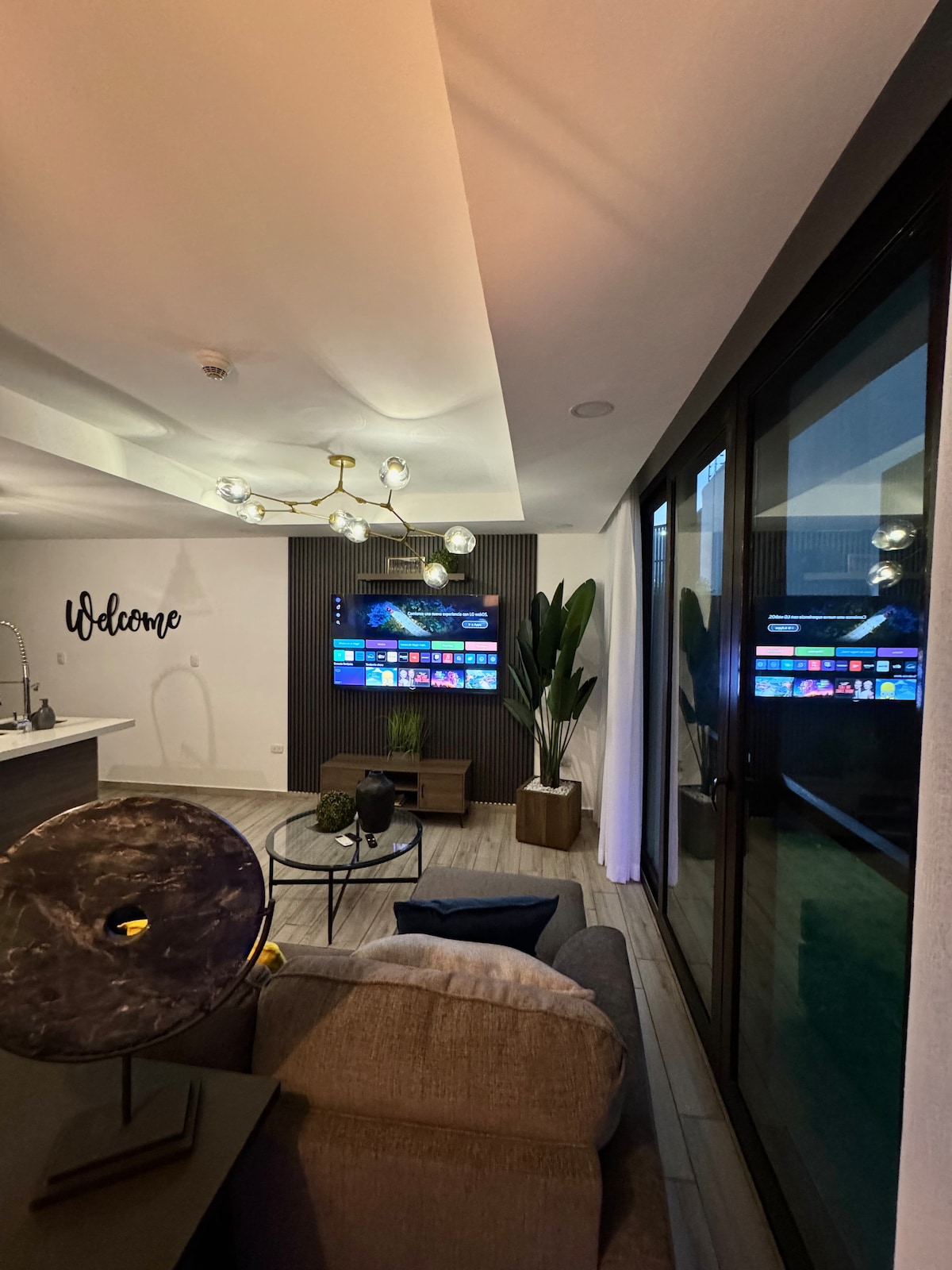 Te encantará hospedarte en este lugar 😊 es único tiene su propio estilo, está automatizado, controlas todo desde tu comodidad con Alexa, ideal para parejas o ejecutivos que buscan un lugar moderno para trabajar y descansar desde casa en una cama King super cómoda, puedes ver tu partido de fútbol en el TV de 65 pulg. con Netflix, Disney, Amazon Prime, perfecto para una noche de películas.🍿 Está ubicado en el 1er piso de la torre 2 ✋Favor leer los reglamentos antes de reservar.