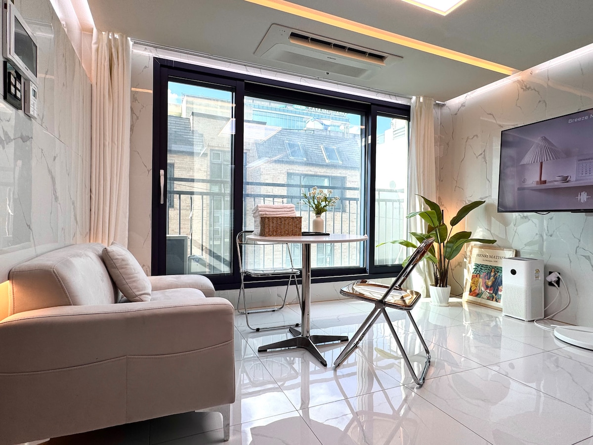 [J HOUSE] Պանորամիկ տեսարան գետի վրա/Հյուրանոցային անկողնային պարագաներ/Հապջոնգ կայարանից 2 րոպե, Հոնդե կայարանից 10 րոպե։