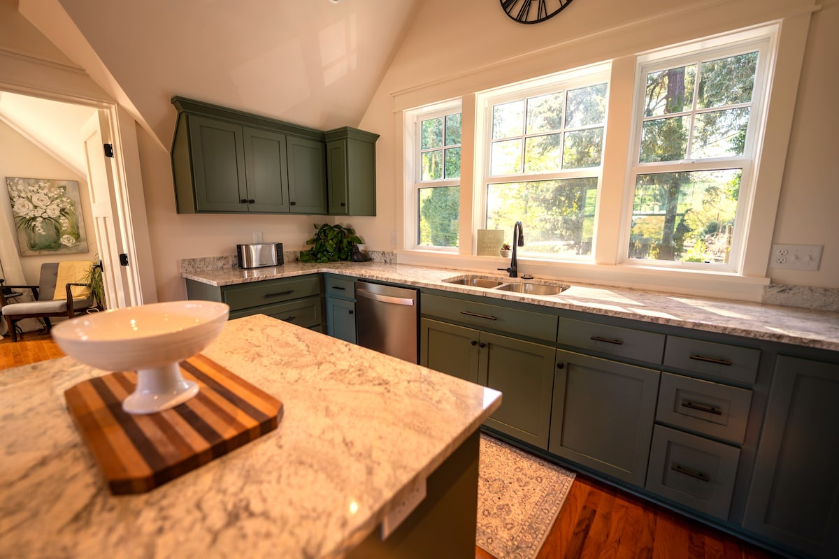 Վայելեք գյուղական միջավայրի խաղաղությունը ՝ մնալով Սալեմի կենտրոնում գտնվող ռեստորաններից և խանութներից ընդամենը մի քանի րոպե հեռավորության վրա: Մեկօրյա ուղևորություն կատարեք դեպի ափ կամ հանգստացեք և վայելեք մի շիշ գինի 2 տախտակամածներից որևէ մեկի վրա կամ լիցքաթափվեք հարմարավետ բուխարիի մոտ ՝ 2 - րդ հարկի հյուրերի հարմարավետ առանձնատանը ՝ առանձին մուտքով ։ Մեր բնակության վայրը գտնվում է Հարավային Սալեմի գեղեցիկ անտառապատ տարածքում, որտեղից հեշտությամբ կարելի է օգտվել Միջպետական 5 - ից ։
