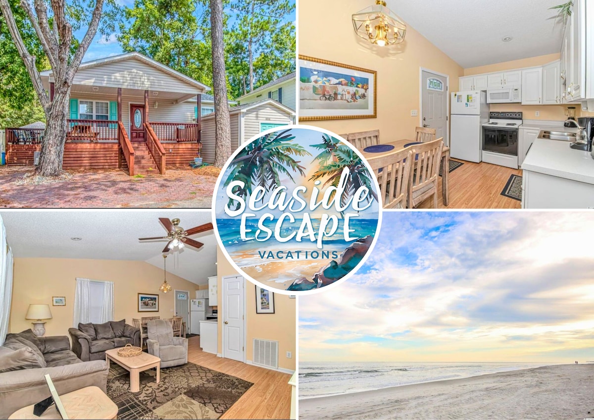 FALL 2025 – PERFECT BEACH WEATHER, FEWER CROWDS! Relax and unwind in this beautifully updated 3BR/2BA beach house just 150 yards from the ocean in the peaceful Summer Cottage community of Myrtle Beach. Enjoy warm sunny days, cool breezy evenings, and wide-open beaches — all without the summer rush. Sleeps 8–10 comfortably with a king primary suite, vibrant open-concept living area, and a fully renovated kitchen. The pool is right next door, and the beach is just a 3–5 minute walk!