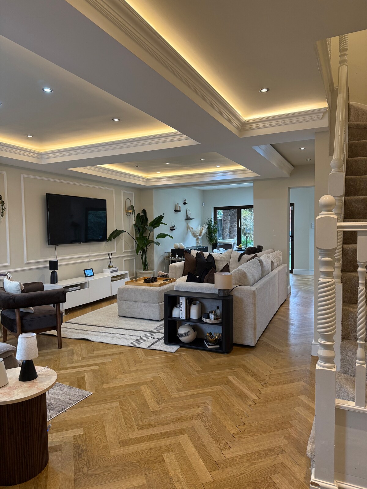 Chic, recently renovated 3-bedroom, 2-bathroom home with two private car spaces, plus both front and rear gardens. Set in a quiet residential area of Ealing, just minutes from Heathrow and the A40. A short 3-minute walk to the train station and only 25 minutes by taxi to Central London. Stylish, spacious, and comfortable—ideal for families, groups of friends, or business travellers seeking convenience and calm.