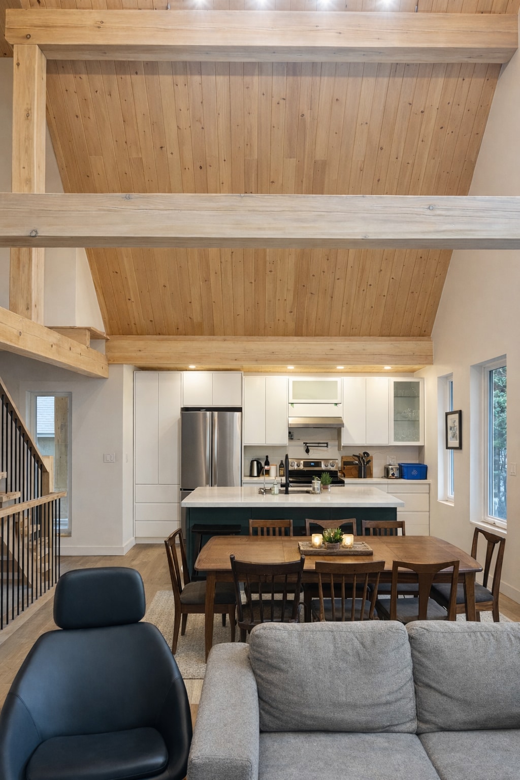 Escape to this charming Scandinavian-style chalet, just a short stroll from one of the most beautiful beaches. With soft sandy shores and crystal-clear, shallow water, it’s an ideal spot for families and children to swim, play, and explore safely. Designed with a cozy Nordic aesthetic, the space features clean lines, warm wood accents, and a calm, inviting atmosphere. Large windows fill the chalet with natural light, creating a bright and comfortable setting for everyone to relax.