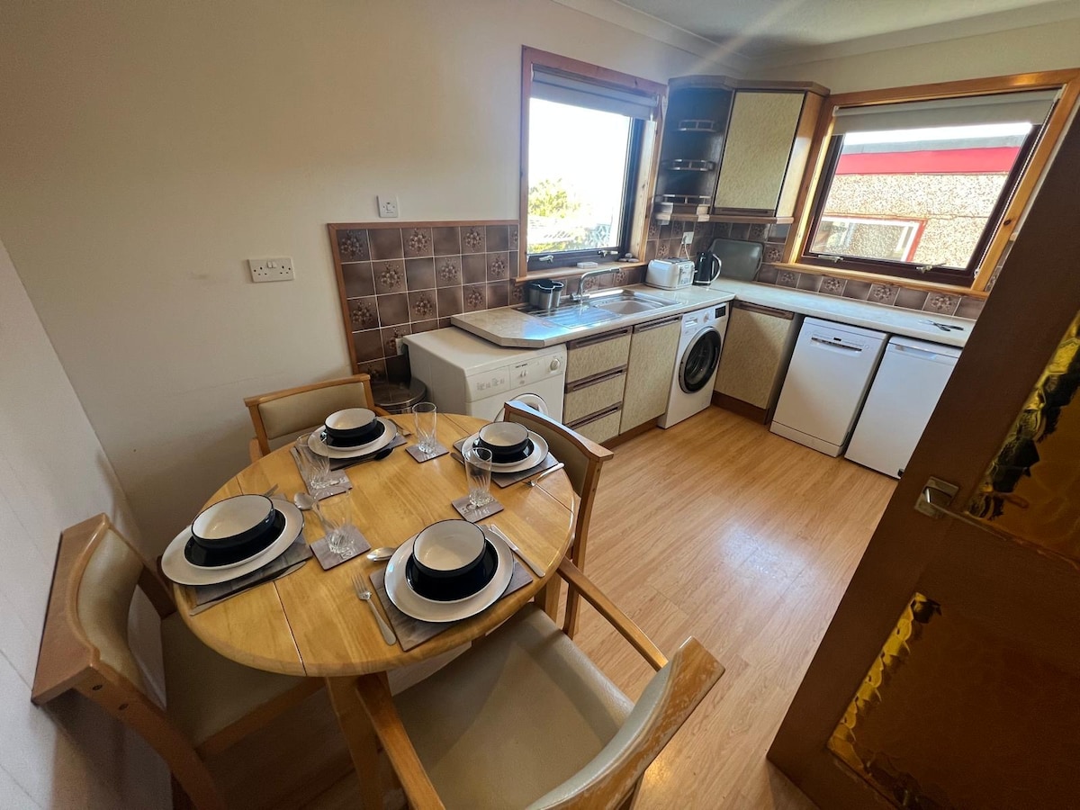 Bright, modern and airy flat, right in the heart of Lerwick. Recently redecorated and refurbished, this flat is equipped with all you need for a comfortable stay. Big bay windows look out over the town's historic Hillhead - the perfect location for viewing the world-famous Up Helly Aa fire festival, as the spectacular torchlight evening procession starts from right outside, making this the ideal view point.