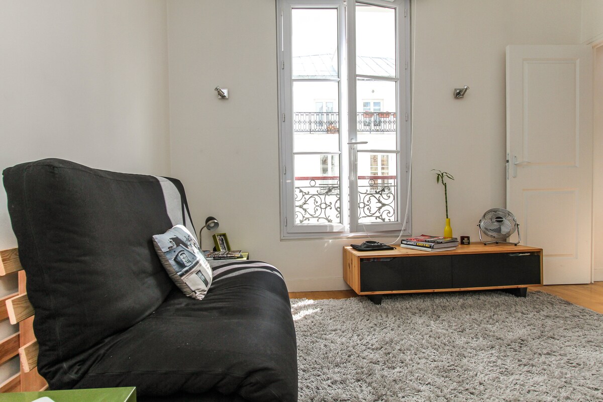 Դուք կմնաք 5 - րդ հարկում գտնվող 38 մ2 մակերեսով բնակարանում, որը գտնվում է մայրաքաղաքի սրտում գտնվող սովորական փարիզյան շենքում ։ 4 հոգու համար նախատեսված այս բնակարանն առաջարկում է գեղեցիկ ննջասենյակ ՝ հյուրասենյակում երկտեղանի լոգասենյակով և 2 տեղանոց բազմոց մահճակալով ։ Այս ընտանեկան կացարանը կենտրոնացված է և մոտ է բոլոր վայրերին ու հարմարություններին ։
