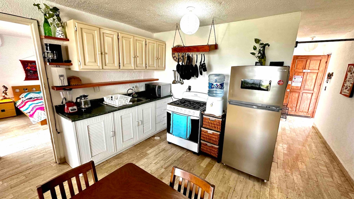 Բարի գալուստ Mar by Kasamia։ Վայելեք Կանկունի լավագույն կողմերը այս ստուդիայում՝ տանիքի լողավազան, համատեղ աշխատանքային տարածք, արագ Wi-Fi, պատշգամբ, 190–22 սմ մահճակալ և փակ կայանատեղ։ Մոտակայքում կան ռեստորաններ, զբոսայգիներ և գլխավոր տեսարժան վայրեր։ Անկախ նրանից՝ աշխատանքային ուղևորության, թե արձակուրդի համար, ձեզ սպասում են հարմարավետություն, ոճ և հարմար գտնվելու վայր։