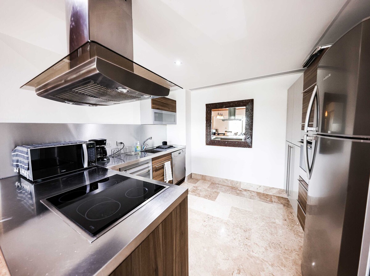 Recently remodeled condo located within La Amada Residencial, offering comfortable indoor spaces and access to a wide range of amenities. The apartment features a private balcony overlooking the sports courts and access to a rooftop pool with views of the marina, mangroves, and the sea in the distance. Guests can also enjoy shared facilities including a gym, sports courts, and a deli market within the complex.