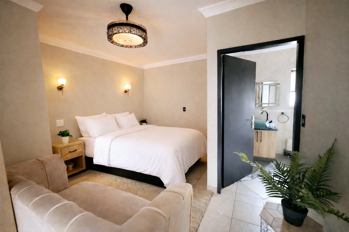 Զգացեք շքեղության գագաթնակետը մեր նրբաճաշակ մեկ ննջասենյակով բնակարանում, որը գտնվում է հեղինակավոր 5 աստղանի հյուրանոցում ՝ Յոհանեսբուրգի բիզնեսի և ապրելակերպի առաջնային թաղամասի սրտում ։ Ընկղմվեք նրբաճաշակ հարմարավետության, բարդ դիզայնի և համաշխարհային կարգի հարմարությունների մեջ, որոնք բոլորը պատրաստված են անմոռանալի այցի համար ։