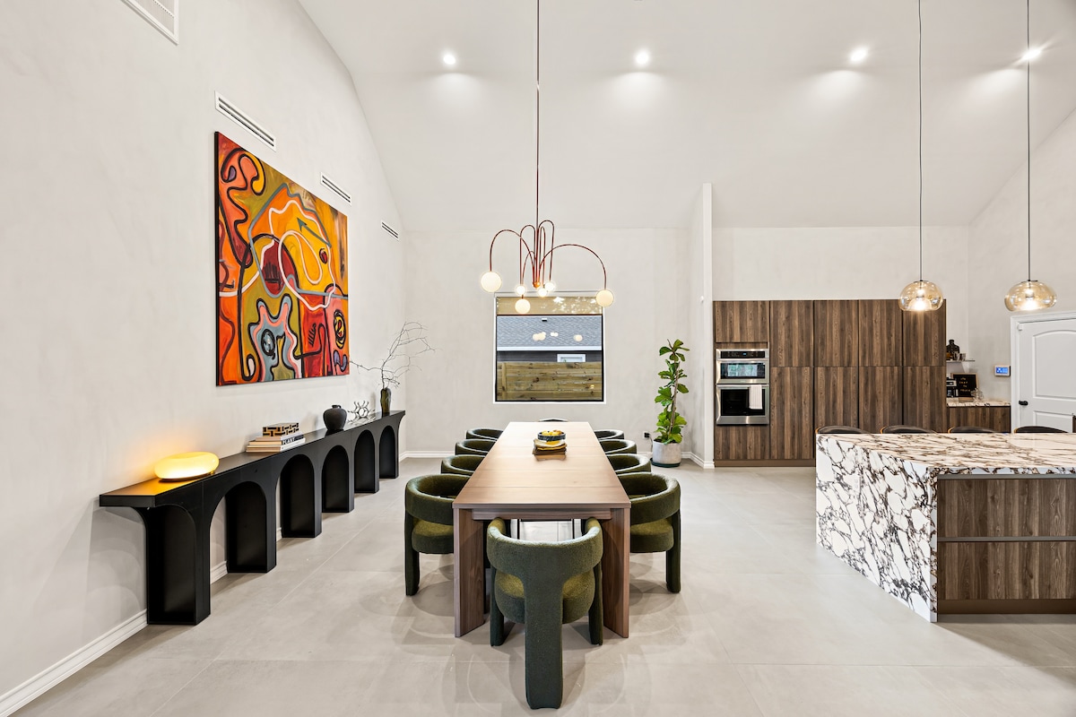 Զգացեք Հյուստոնի լավագույն կողմերը այս ժամանակակից, երաժշտությամբ ոգեշնչված շքեղ տանը: Գտնվելով Կենտրոնի, մարզադաշտերի և լավագույն տեսարժան վայրերի մոտակայքում ՝ այս նորաոճ հանգիստն առաջարկում է աչքի ընկնող հարմարավետություն, հարմարավետություն և համարձակ դեկոր: Կատարյալ է արձակուրդների, միջոցառումների կամ արագ ուղևորությունների համար ։ Բաց մի թողեք ձեր այցն այսօր ։ Ջոկատի համար ավելի շատ տարածք պե ՞ տք է ։ Ծածկեք մեր ԵՐԿԱԿԻ հայտարարությունը երկու տներով կողք - կողքի ՝ airbnb.com/h/seven13chatea-dual Ամրագրեք հիմա ։ Էներգիա բերեք ։ Մնացեք շքեղության մեջ ։ 🎶