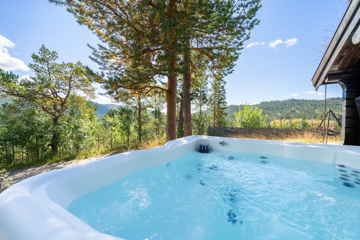 Koselig og moderne laftehytter med jacuzzi .