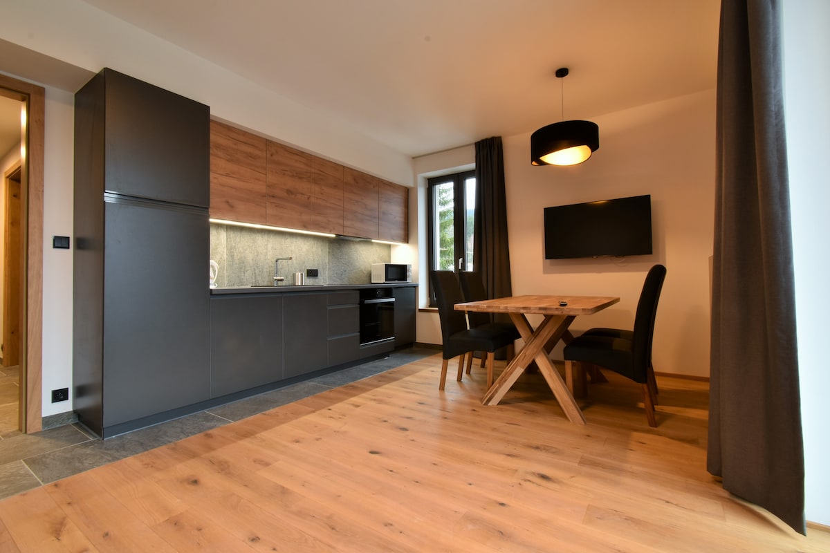 Օդային և ընդարձակ բնակարանը կբավարարի ձեր բոլոր ցանկությունները ժամանակակից կացարանի համար ՝ մինչև 4 հոգու համար նախատեսված սեփական առողջ ապրելակերպով: Հյուրասենյակում երկտեղանի մահճակալով (180x200) և բազմոց մահճակալով բնակարան հյուրասենյակում ՝ մինչև 2 հոգու համար, խոհանոցիկ և տեռաս ՝ մրրիկով: Շրջակա լեռների համայնապատկերները կարող եք վայելել անմիջապես ջակուզիից ։ Ի ՞ նչ ավելին կարող եք ցանկանալ: Ոտքերը դրեք սեղանին և հանգստացեք այս հանգիստ, նորաոճ տարածքում ։ Շենքն ունի նաև ֆիննական շոգեբաղնիք: