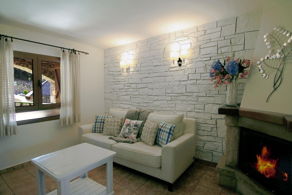 Bonito apartamento de montaña en el Pirineo, en Benasque.Vistas al pico de Cerler y selva de Conques, Terraza con mesa para comer y sofá, orientada al Sur. En una zona muy tranquila del pueblo, a sólo 5 kms de la estación de esquí de Cerler y del Parque natural Posets Maladeta. Para desconectar o teletrabajar. Wifi gratuita. dormitorio con cama de matrimonio de 180 cms. Y un sofácama en el salón que puede usarse como individual para un niñ@. Nuestro número de autorización turística es H-HU-487.