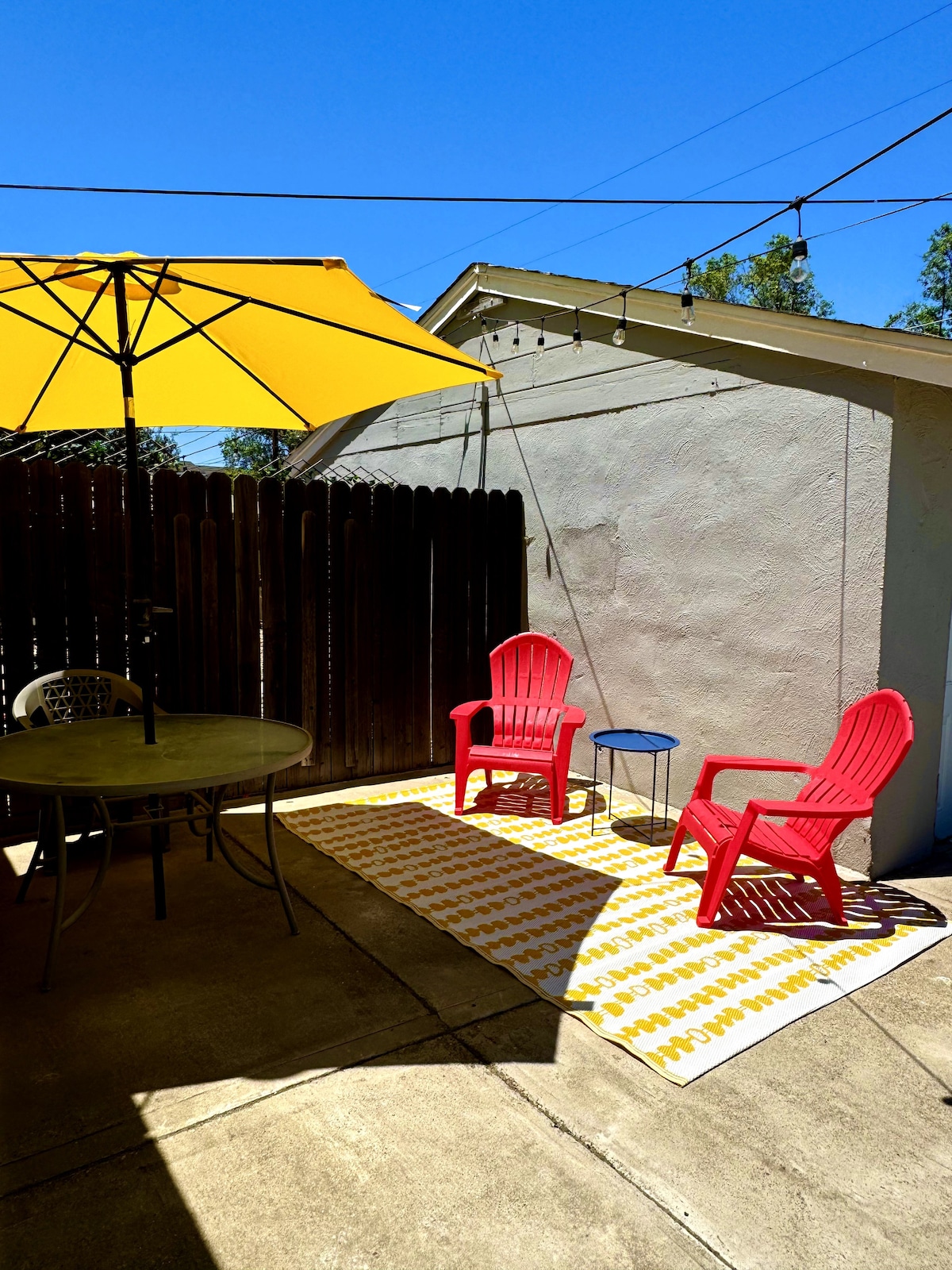 Enjoy the peaceful PET FRIENDLY back patio. Enjoy a gas fire pit or bbq some dinner on the grill. Keep it simple at this peaceful centrally-located in Historic Downtown Modesto. This new build 1 bedroom with all new construction and appliances is walking Distance to Gallo Center for the Arts, Mchenry Mansion the Museum , Brendan Movie Theater, The State Theatre and you can enjoy all the night life on the weekends. Even catch Modesto's past time of some cruising on the weekends.