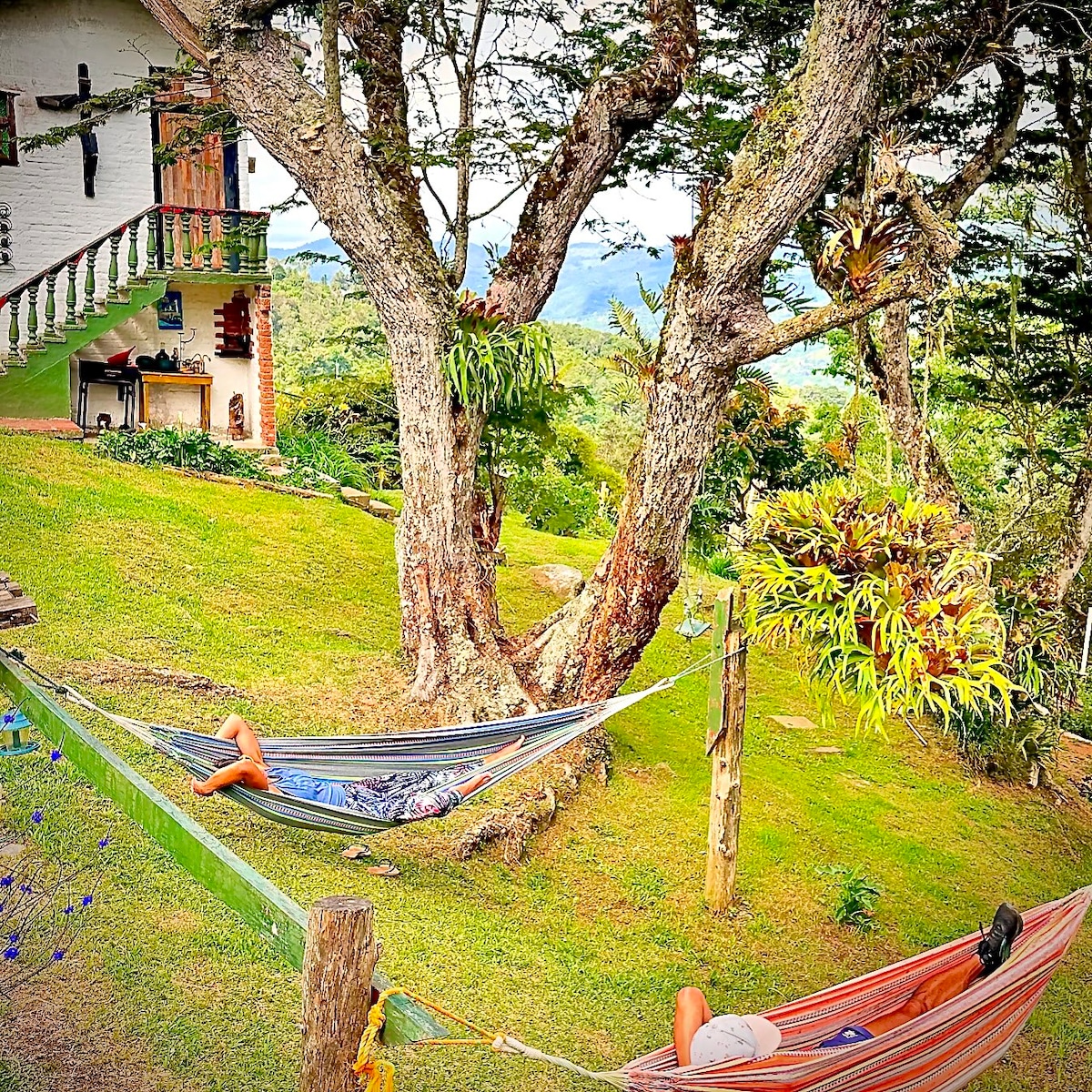 We are a four floor Villa high in the mountains. Located in La Buitrera de Palmira. Temperature is perfect year round. All inside bathrooms have hot water. We have wifi, a bar and eating area that you can observe hummingbirds. We have over 35 species of hummingbirds. The Villa is filled with light, fresh breezes and nearby activities such as horseback riding, Nirvana the natural reserve, hikes to rivers and more. We welcome everyone here.