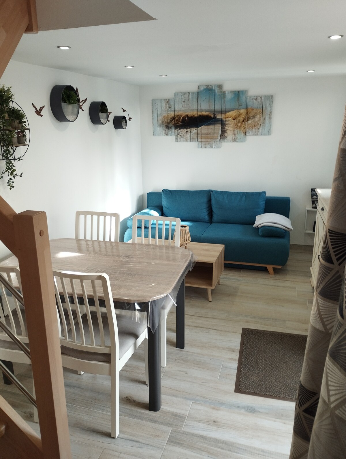 Charmante maison entièrement rénovée , au calme , lumineuse , avec WIFI ouvrant sur grande terrasse et jardin clos, confortable, Idéale pour couple/2 enfants ou 3/4 adultes . Au RDC un espace ouvert avec salon 2 canapés-lit, tv, salle à manger ,cuisine entièrement équipée .1 wc, lave main. A l'étage, confortable petite chambre sous les toits donnant sur terrasse ,lit 190x140cm,TV,dressing et meuble rangement ,petite salle d'eau avec douche à l'italienne, lavabo fenêtre, 1wc. VMC