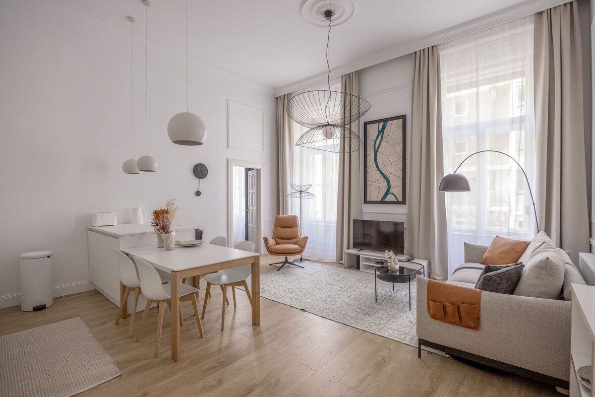 Spacious and breezy 82 square meter apartment in the heart of Budapest downtown, on the 2nd floor, with elevator, of a building dating back to the early 20th century. Located in a charming neighbourhood within the 5th district. This impressive and luxurious property is the perfect stay for an unforgettable holiday. Thoughtfully designed with a close attention to the smallest details, everything serves your comfort and relaxation. Be a local with Hiraeth home.