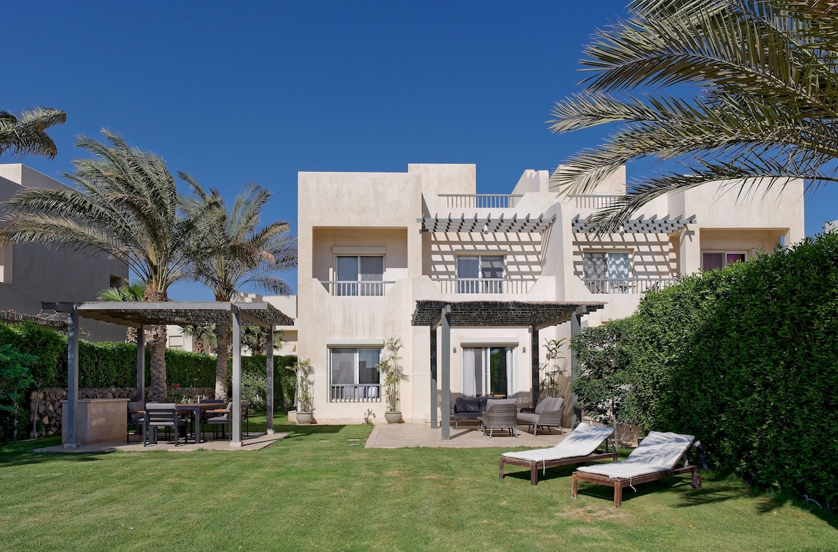 Նրբագեղ վիլլա Հուրգադայի զբոսայգու սրտում՝ հենց «Մարլին Ինն» հյուրանոցի դիմաց։ Ունի 3 ննջասենյակ, լոգասենյակ, լիովին կահավորված խոհանոց և հարմարավետ հյուրասենյակ։ Վայելեք մասնավոր պարտեզ ջակուզիով և անվճար մուտք դեպի Մաշրաբիա լողափ 4 հյուրի համար։ Prime, բարձրակարգ վայր՝ ռեստորանների, սրճարանների և բոլոր ծառայությունների մոտակայքում. կատարյալ է հարմարավետություն և ոճ փնտրող ընտանիքների և ընկերների համար