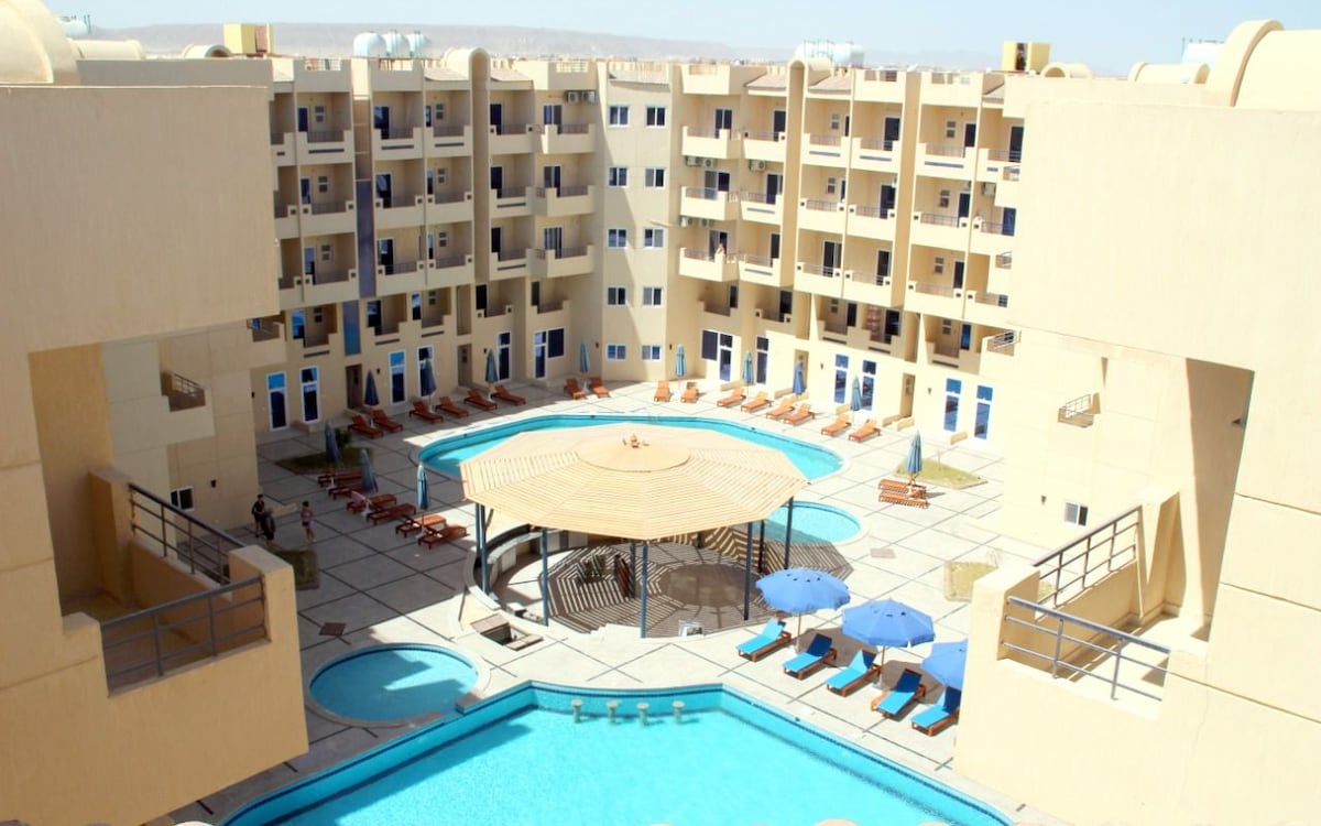 Պարզ եղեք այս խաղաղ և կենտրոնամերձ վայրում ։ Վայելեք ձեր հանգիստը Հուրգադայի սրտում ՝ մասնավոր բարդ Dau Heights - ում ՝ ծովի և լողավազանի տեսարանով բոլոր ծառայություններով ( լողավազաններ, հաջորդականություն, պատշգամբ, LCD, օդորակիչ , կենտրոնական արբանյակ, կահավորված խոհանոց, լվացքի մեքենա, ջրատաքացուցիչ, աքաղաղ և հիգիենիկ սենյակների սպասարկում, արդուկ)