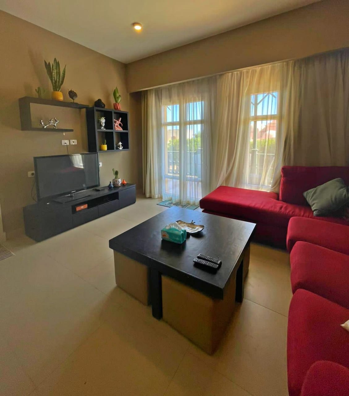 Վայելեք յուրահատուկ հանգիստ մեր նորաոճ առաջին հարկի բնակարանում, որտեղից բացվում է հիանալի տեսարան դեպի պարտեզ և լողավազան ։ Բնակարանը բաղկացած է հարմարավետ ննջասենյակից և ընդարձակ հյուրասենյակից ՝ բաց խոհանոցով, ինչպես նաև նորաոճ լոգասենյակից և մեծ կտուրից, որը թույլ է տալիս հանգստանալ հանգիստ մթնոլորտում ։ Այն, ինչ առանձնացնում է մեր բնակության վայրը, գտնվում է հանգիստ բնակելի համալիրում, որտեղ դուք հեշտությամբ մուտք ունեք դեպի առևտրի կենտրոն (առևտրի կենտրոն )՝ բնակարանից ընդամենը 20 քայլ հեռավորության վրա, որտեղ կան մի շարք ռեստորաններ և սրճարաններ: Բացի այդ, տարածքը գտնվում է օդանավակայանից ընդամենը 10 րոպե հեռավորության վրա, ինչը այն իդեալական է դարձնում հարմարավետություն փնտրող ճանապարհորդների համար ։