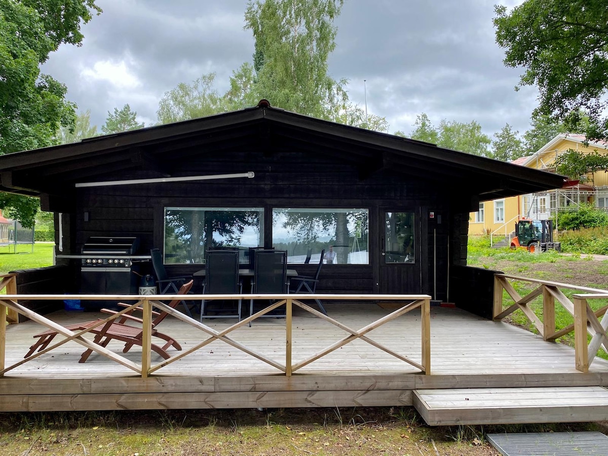 Uniikki ja viihtyisä mökki järven rannalla