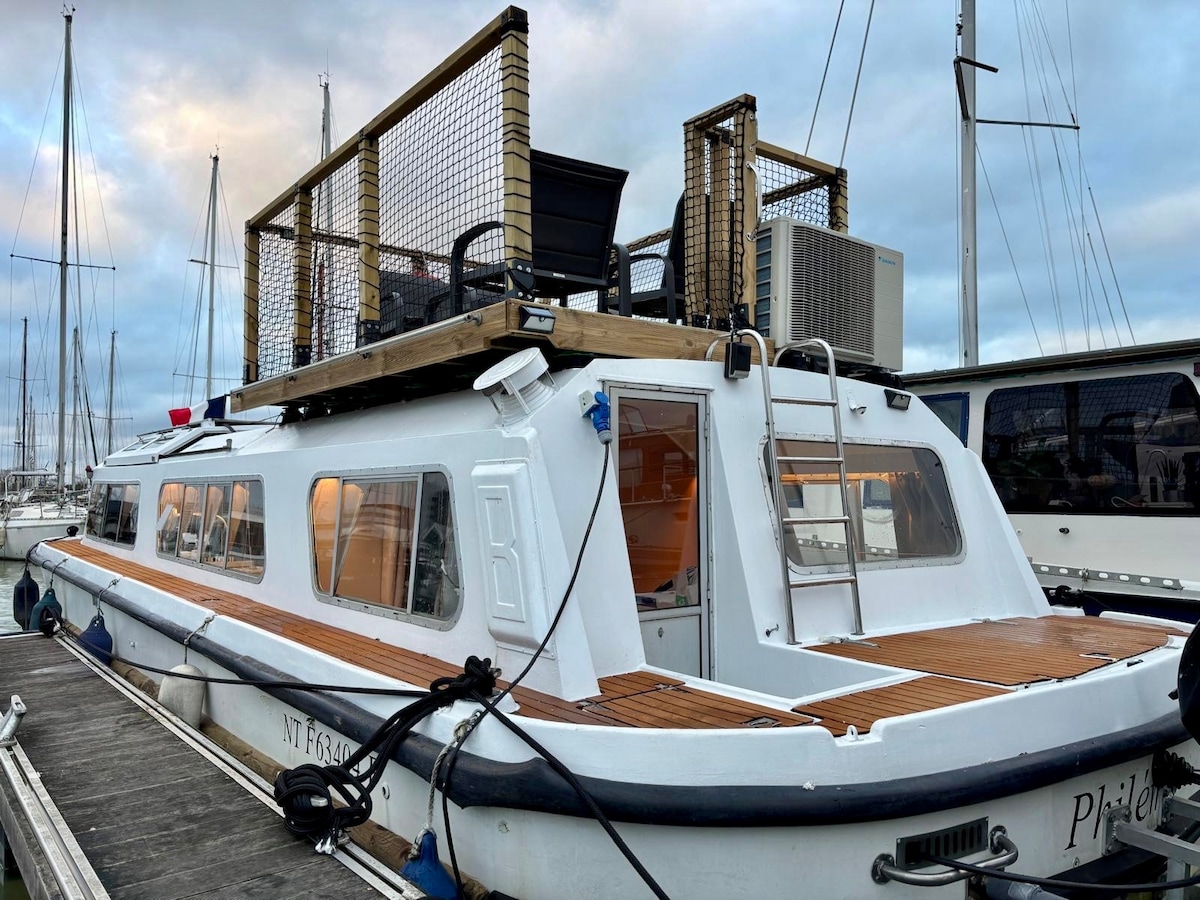Bienvenue à bord de notre charmante péniche unique et atypique amarrée au cœur du port de Bordeaux bassin à flot, une expérience unique pour un séjour inoubliable. Ce logement atypique, idéal pour 4 personnes, vous offre tout le confort moderne dans un cadre paisible, avec une vue imprenable sur la Garonne et la ville. Située à quelques pas du centre-ville de Bordeaux, la péniche est parfaitement placée pour découvrir la ville. Idéal pour les amateurs de gastronomie, de vins et de promenades.