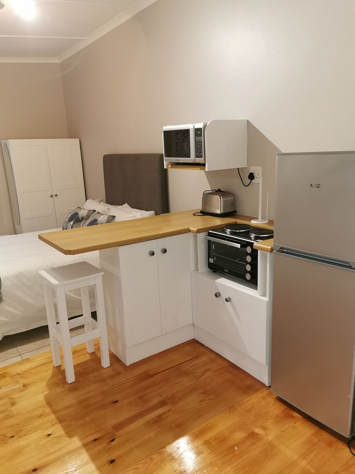 A Spacious (61sq m) Self-Catering Garden Cottage located at the center of Port Elizabeth in the Trendy Suburb of Walmer Downs. Our cottage has a comfortable lounge with DSTV Satellite TV and a well-equipped open-plan kitchen area. Our Bedroom with queen size bed and crisp white linen has ample build in cupboards and a modern en-suite bathroom with a large shower. Top shopping, tourist and dining destinations are only a few minutes away. Hope to see you soon!
