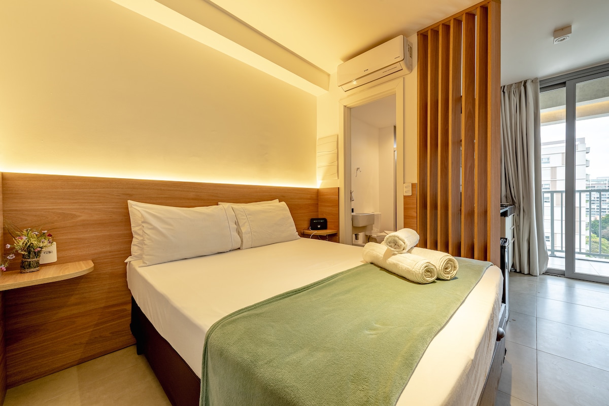 Ժամանակակից և ամբողջական ստուդիա Մոեմայում՝ Սան Պաուլոյի ամենագեղեցիկ և լավ տեղադրությամբ թաղամասերից մեկում։ Մետրոյից, Կոնգոնասի օդանավակայանից, առևտրի կենտրոններից և Իբիրապուերա զբոսայգուց մի քանի րոպեի հեռավորության վրա դուք կլինեք այն ամենի մոտ, ինչ ձեզ հարկավոր է՝ լինի դա հանգստի, աշխատանքի թե բուժման համար։ Տարածքը ունի արագ Wi-Fi, օդորակիչ, ամբողջովին կահավորված խոհանոց, անկողնային սպիտակեղեն և սրբիչներ։ Շենքում կա ջեռուցվող լողավազան, ջակուզի, մարզասրահ, լվացքատուն և մինի մարկետ։ Նշում. տարածքում մինչև որոշակի ժամ լսվում է ինքնաթիռի աղմուկ