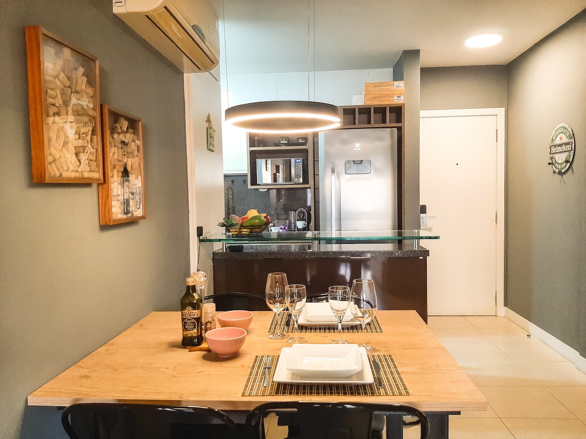 Ձեր ստանդարտ բարձր այցը Ֆլորիանոպոլիսի կենտրոնում ՝ օվկիանոսի տեսարաններով ։ Բնակարանն ամբողջությամբ ձևավորված և կահավորված էր, որպեսզի հյուրերն իրենց զգան ինչպես տանը, և դուք կարող եք վայելել հիանալի նրբաճաշակությամբ և նրբագեղությամբ հանգիստ ՝ 68 մ² ամբողջական տարածքում ։ Գտնվելով քաղաքի լավագույն ակումբային կոնդոմինիումներից մեկում ՝ դուք կարող եք վայելել տարբեր հարմարություններ, ինչպիսիք են լողավազանը, ֆիթնես կենտրոնը, սքվոշը, խաղասենյակը, բոլոր 24 ժամվա ընթացքում: Զարմանալի է ։