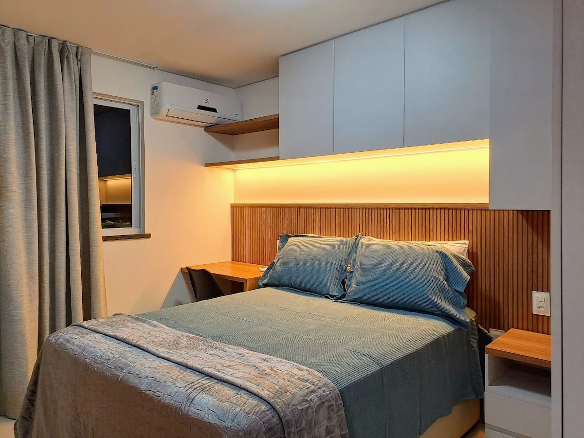 Ստուդիան ձևավորված է բարձր ստանդարտով և նախատեսված է կարճաժամկետ կամ երկարաժամկետ այցերի համար ։ Իդեալական է զույգերի կամ միայնակ ճանապարհորդողների համար ՝ լինի դա հանգստի, թե աշխատանքի համար ։ Տեղավորում է մինչև 2 հոգի ՝ բոլոր անհրաժեշտ հարմարություններով ։ Գտնվում է ծովափից ընդամենը 600 մետր հեռավորության վրա ՝ հանգիստ և խաղաղ փողոցում ։ Մոտակայքում ամեն ինչ ՝ շուկաներ, դեղատներ, սրճարաններ և ռեստորաններ մեքենայով 10 րոպե հեռավորության վրա ։ Վայելեք փողի լավագույն արժեքը ՝ Բրազիլիայի ամենագեղեցիկ ափամերձ գոտիներից մեկի մոտակայքում մնալու համար, որտեղից հեշտությամբ կարող եք օգտվել քաղաքի հիմնական տարածքներից ։