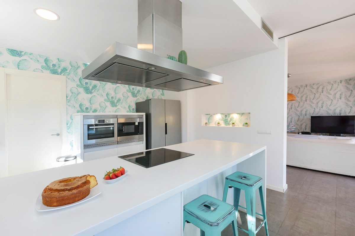 Villa by Playa den Bossa & Ibiza town 7min, BBQ