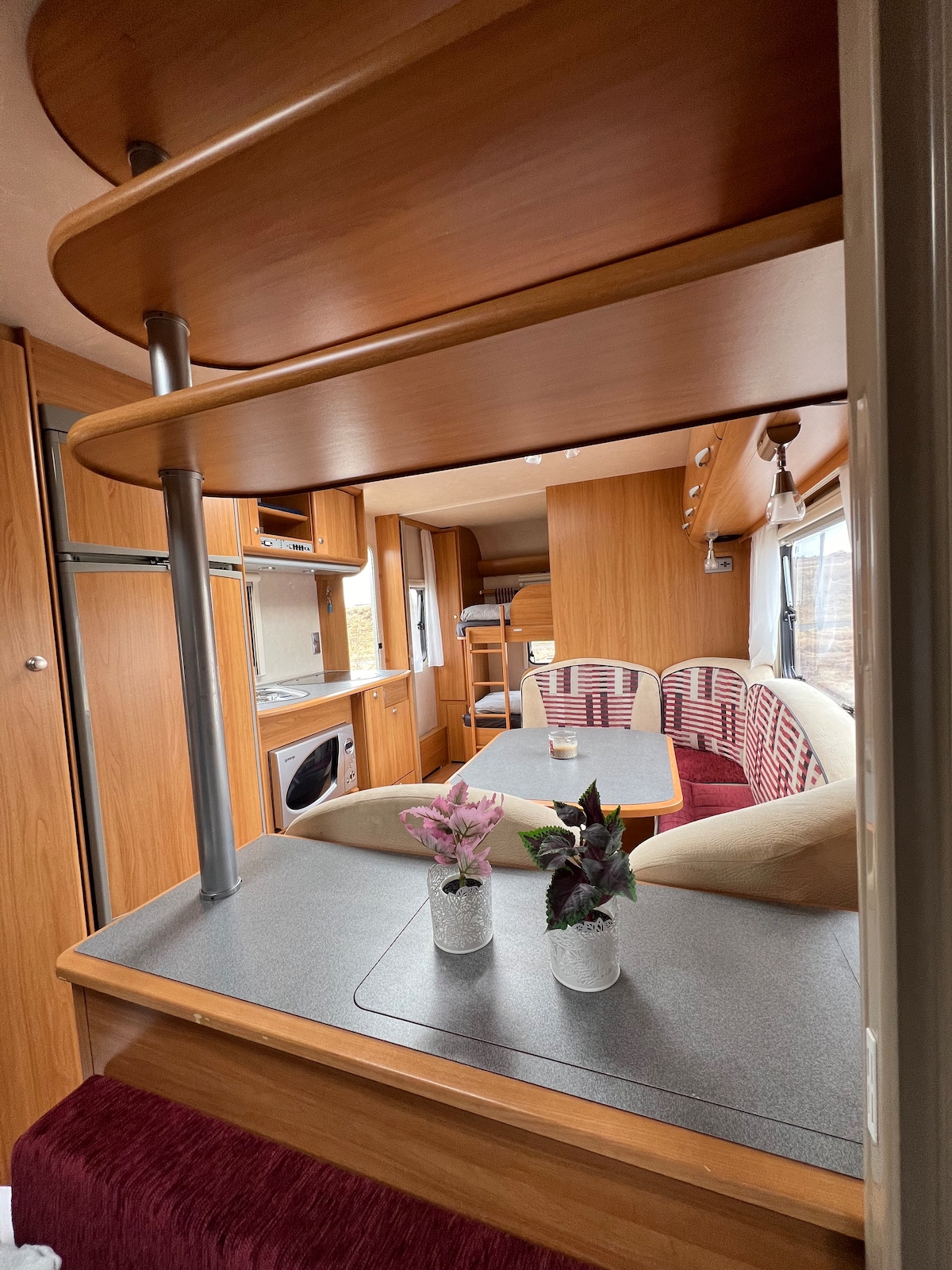 Շատ լավ պահպանված ավտոտուն, որը լիովին կահավորված է ճանապարհորդելու համար ։ Ունի գազօջախ, գազի ջեռուցման համակարգ, սառնարան, շատ հզոր ինվերտոր (1,500 վ), այնպես որ երբեք ստիպված չեք լինի կապել արտաքին էներգիայի հետ ՝ տոստեր, սենդվիչ պատրաստող սարք, սրճեփ և վարսահարդարիչ օգտագործելու համար: Ներառում է քեմփինգի 4 աթոռ, սեղան և բարբեքյու ։ Ներառված է գազ, զուգարանի համար նախատեսված քիմիական նյութ, զուգարանի թուղթ, 1 սրբիչ մեկ անձի համար, զուգագուլպաներ, նավիգացիոն համակարգ, լրացուցիչ վարորդ և այլն ։ Հասանելի է 10 ԳԲ ներբեռնմամբ Wi - Fi,ավարտեք մաքրումը ՝ 120 եվրո