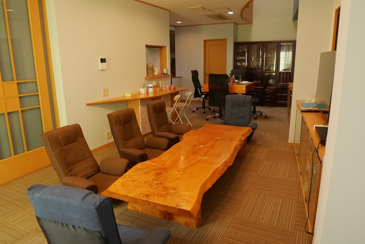 私のリスティング「風ノ逸」へようこそ! オーナーのMomoです。 ロケーション最高 山の香りを感じながらも、とても涼しい風が各部屋とリビングを吹き抜ける、素敵なリハウス。 歩いてコンビニが近い、1分。 車で海が近い、5分。 家族と一緒に庭から続く広いスペースで、BBQを楽しむことができます。 炭の香りと熱さに火照りながらも、ふと見上げると夕暮れ時の 山の緑と草の匂い。ウイスキーソーダを喉に流し込みながら、最高のBBQを楽しみました。 絶対にオススメです。 別館には卓球台やビリヤードなどの娯楽施設があり、11a.m~10p.m自由にご利用いただけます。 九十九里浜やゴルフ場も近くにあります。 家族全員で快適で楽しいアクティビティを楽しめる家です。 本链接是附楼的一套两室一厅,可容纳6人。 我们的千叶度假村包含主楼独栋别墅和旁边的附楼,主楼是两层楼的八室独栋别墅,最多可住16-36人,附楼还有六套两室一厅,每套都可以入住6-7人,整个度假村可容纳80多个人入住。庭院内设有烧烤设施,附楼设有乒乓球桌和台球等娱乐设施供您使用。 非常适合公司团建、大型聚会,多个家庭出游度假。