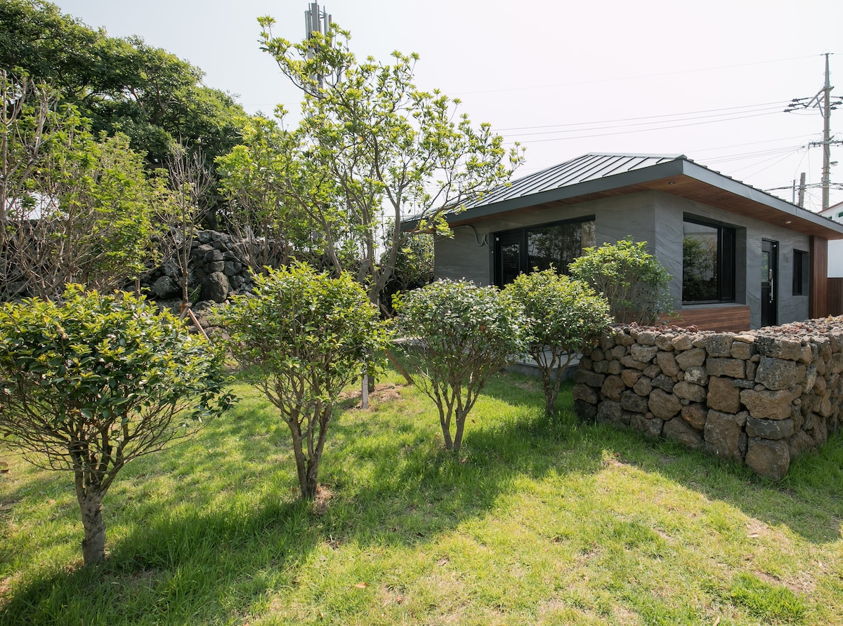 Այն գտնվում է Սեոգվիպոյի և Յունգմուն քաղաքի կենտրոնի միջև, որտեղից տեսարան է բացվում դեպի ծով, իսկ հետևի մասում ՝ Hallasan Mountain - ը ։ Մոտակայքում կա E - mart և Eongto Falls, որտեղ ջուրը հոսում է, երբ անձրև է գալիս ։ Այն գտնվում է միջին լեռնային ճանապարհի վրա, այնպես որ դուք կարող եք հեշտությամբ գտնել այն, և դուք կարող եք վայելել Ջեջու կղզու մթնոլորտը շրջակա տանգերինի դաշտերով: Առավոտյան ծովը կարելի է տեսնել հեռվում, իսկ գիշերը շատ աստղեր կան: Արդեն 10 տարի է, ինչ տեղափոխվել եմ Ջեջու կղզի ։ Մենք ապրում ենք անզուգական գոհունակությամբ մեր կյանքի ընթացքում: 2019 թվականից սկսած ՝ մենք նոր տուն ենք կառուցում մեր առջև ։ Ճիշտ այնպես, ինչպես մեր ընտանիքը լիովին բավարարված է, հուսով ենք, որ բոլոր հյուրերը, ովքեր գալիս են մեր տուն, կստեղծեն շատ հիշողություններ, որոնք հարմարավետ են, զվարճալի և երջանիկ: ^^