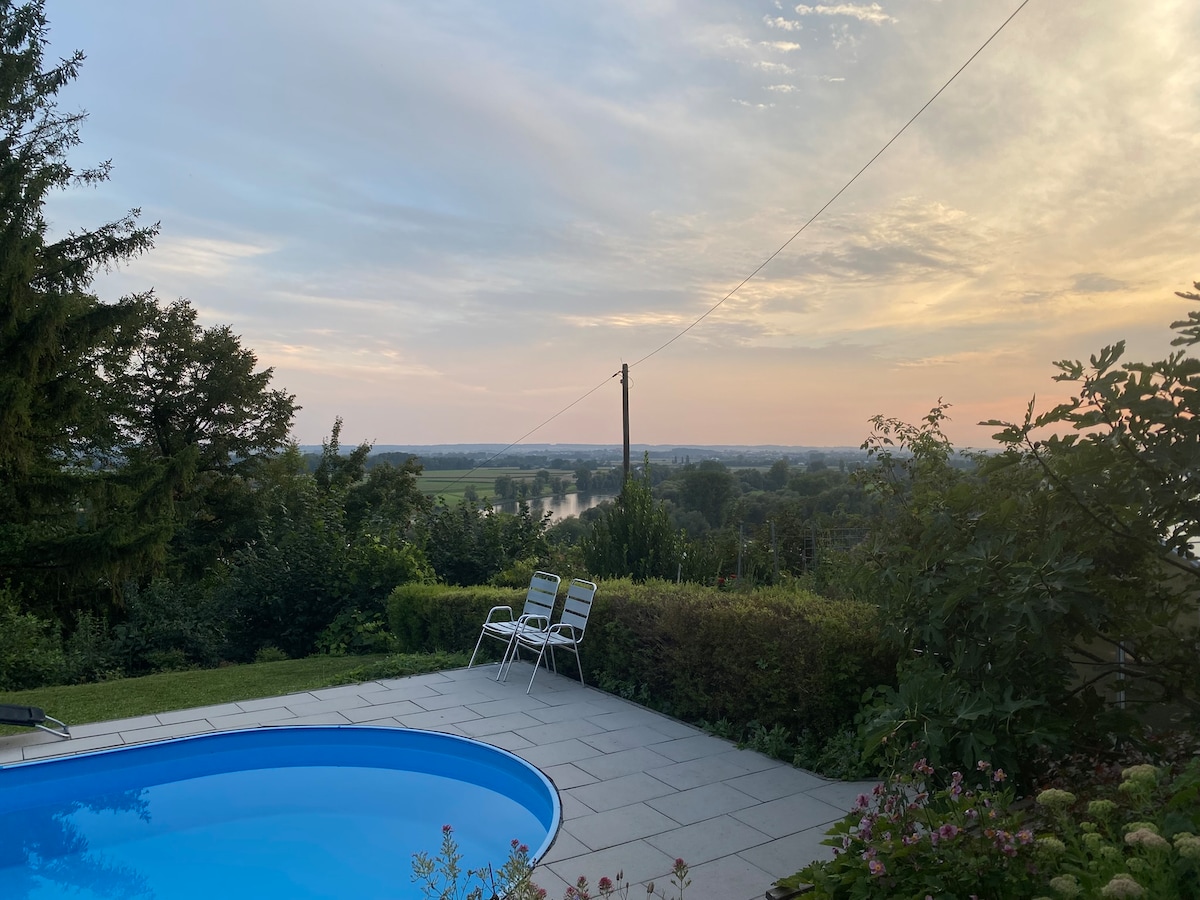 Բարի գալուստ Դոնաուբլեկի բնակարան ՝ լողավազանով և Դանուբի հանգույցի ֆանտաստիկ տեսարանով ձեր փոքրիկ հանգիստը ։ Լուսավոր սենյակները, բնական նյութերը և սիրառատ մանրուքները շնչելու տեղ են ստեղծում ։ Վայելեք հարմարավետ երեկոներ բուխարիի մոտ, լողացեք արևի լույսի ներքո լողավազանի մոտ և թողեք առօրյա կյանքը ձեր հետևից: Երկուսի համար ՝ ընտանիքի հետ, թե միայնակ, այստեղ կգտնեք խաղաղություն, ջերմություն և տան մի կտոր բնության գրկում ։