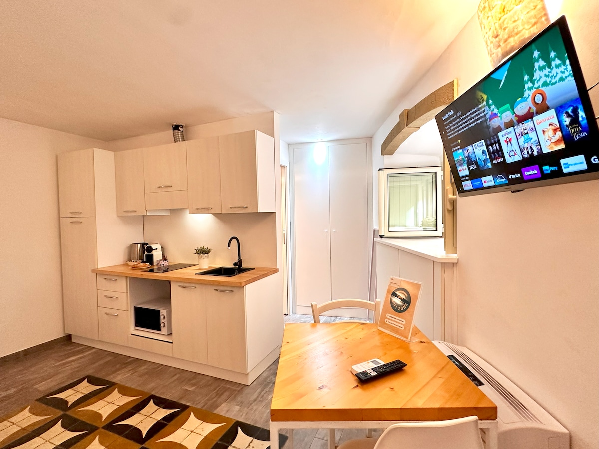 Ստուդիո բնակարան, որը գտնվում է կենտրոնական Castello թաղամասում, հեշտությամբ հասանելի է երկաթուղային կայարանից եւ Cagliari նավահանգստից: Թաղամասը մուտք է գործում Կաստելլո Պորտա Կրիստինա և Սան Պավրացիո և Վիա դել Կամինո Նուևո տանող պատմական դռնից ։ Այն բաղկացած է մեկ սենյակից, որը իդեալական է երկու հոգու համար, խոհանոցիկով, որը հագեցած է միկրոալիքային վառարանով, ինդուկցիոն կաթսայով, ընդարձակ զգեստապահարանով, փոքրիկ ընթերցանության անկյունով ՝ բազկաթոռով և լուսային կետով և այլ հարմարություններով: Ամանալվաց մեքենա, Wi - Fi ՝ ուլտրա - արագ մանրաթելերով ։