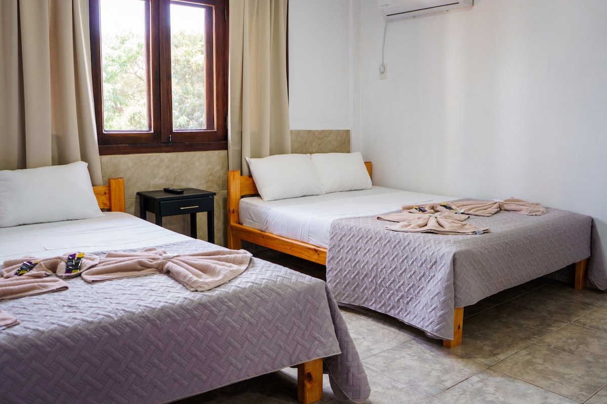 Te invitamos a disfrutar de nuestra habitación para hasta 4 personas, con dormitorio, sofá cama en el living, aire acondicionado, Wi-Fi, TV y zona de té y café con frigobar. Algunas habitaciones tienen balcón. Ofrecemos desayuno gratuito, y almuerzo y cena buffet por kilo (con costo adicional). El estacionamiento es gratis y estamos a solo 2 km del centro, con fácil acceso por la avenida principal. ¡Te esperamos!