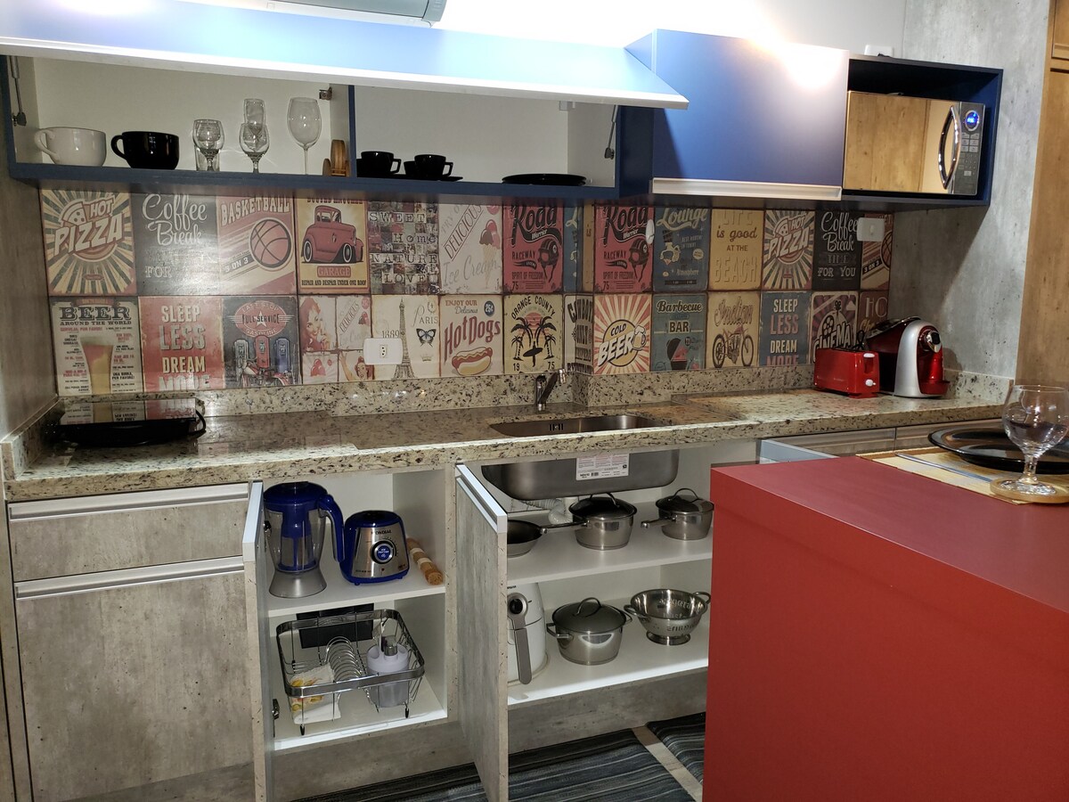 Ժամանակակից ստուդիա՝ քաղաքացիական կենտրոնում՝ իդեալական է նրանց համար, ովքեր Կատանիայում փնտրում են հարմարավետություն, գործնականություն և գերազանց տեղադրություն։ Օդորակված միջավայր, կահավորված խոհանոց և Smart TV՝ հանգստի կամ աշխատանքի համար։ 🛏️ Այն հարմարավետորեն կարող է տեղավորել մինչև 4 հոգի, ունի որակյալ անկողնային պարագաներ։ • ջեռուցվող լողավազան • Մարզասրահ • Սաունան • Տեռասը • Լվացքատունը (վճարովի) 🚗 Հնարավոր է կայանել շենքում, մեկ գիշերվա համար՝ 35 ռեալ Վճարում PIX-ի միջոցով՝ տանտիրոջը։