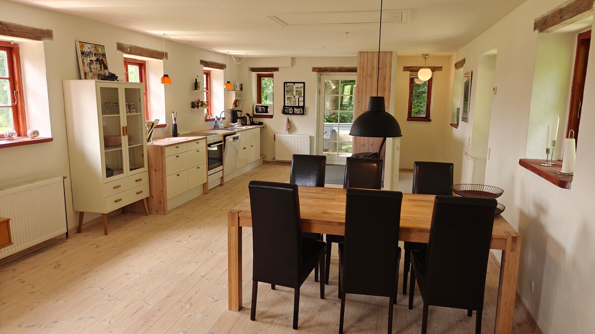 Indtil 2/2-2026 EM Herre-Håndbold Semifinale og finale i Jyske bank boxen Herning (ca 33 km ) Kom helt ned i gear i denne idylliske bolig på landet, hvor du vågner op til udsigten af ænder, høns, geder og æsler. Perfekt til en fredelig pause fra hverdagen, men stadig tæt på oplevelser: 5 km til Skovsnogen (Deep Art Forest), 35 km til Legoland og Billund Lufthavn, og kun 30 km til MCH Messecenter Herning og Jyske Bank Boxen.