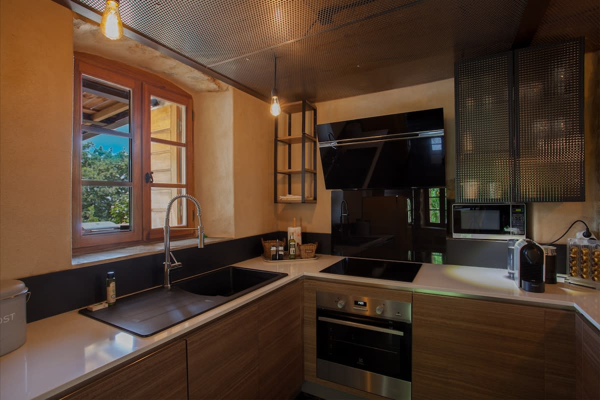 Demeure de charme en pierre de la région entièrement construite par le propriétaire respectueuse de l'environnement entre mer, montagne et piscine (classement 5 étoiles ). A 5 mn des fameuses Gorges de l'Asco, rivière, cascades . A 25 mn des plus belles plages de Balagne, Ostriconi, Lozari. Dans un site préservé, au calme absolu avec une vue superbe .Ce logement est parfait pour une escapade en amoureux avec un accès privatif à la piscine à débordement des propriétaires. Internet fibre