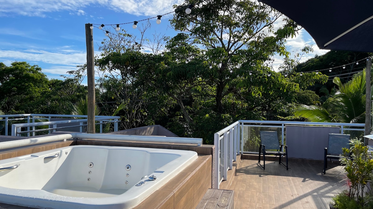 Ոճով և հարմարավետությամբ տուն, 5 աստղանի առանձնաբաժին (գազի ցնցուղ և մեծ լոգարան երկուսի համար ՝ հիդրո, օդորակիչ, առաստաղի օդափոխիչ, որակյալ քիլթ, 400 մետաղալարով բամբակյա սավաններ, հեռուստացույց, արագ Wi - Fi ՝ երկու մատակարար, պատշգամբ ՝ ցանցով, տեսարան դեպի Ատլանտիկայի անտառ և ընդարձակ պահարան ։ Ձեր լրացուցիչ հարմարավետության համար ՝ բուխարի, ամբողջական խոհանոց և կրպակ - չուրասկեյրա, լողավազան երկու սաունայի և գետի համար ։ Ցանկապատված այգի ձեր տնային կենդանու համար ։ Հանգիստ կոնդոմինիում, հեշտ մուտք դեպի լողափեր ։