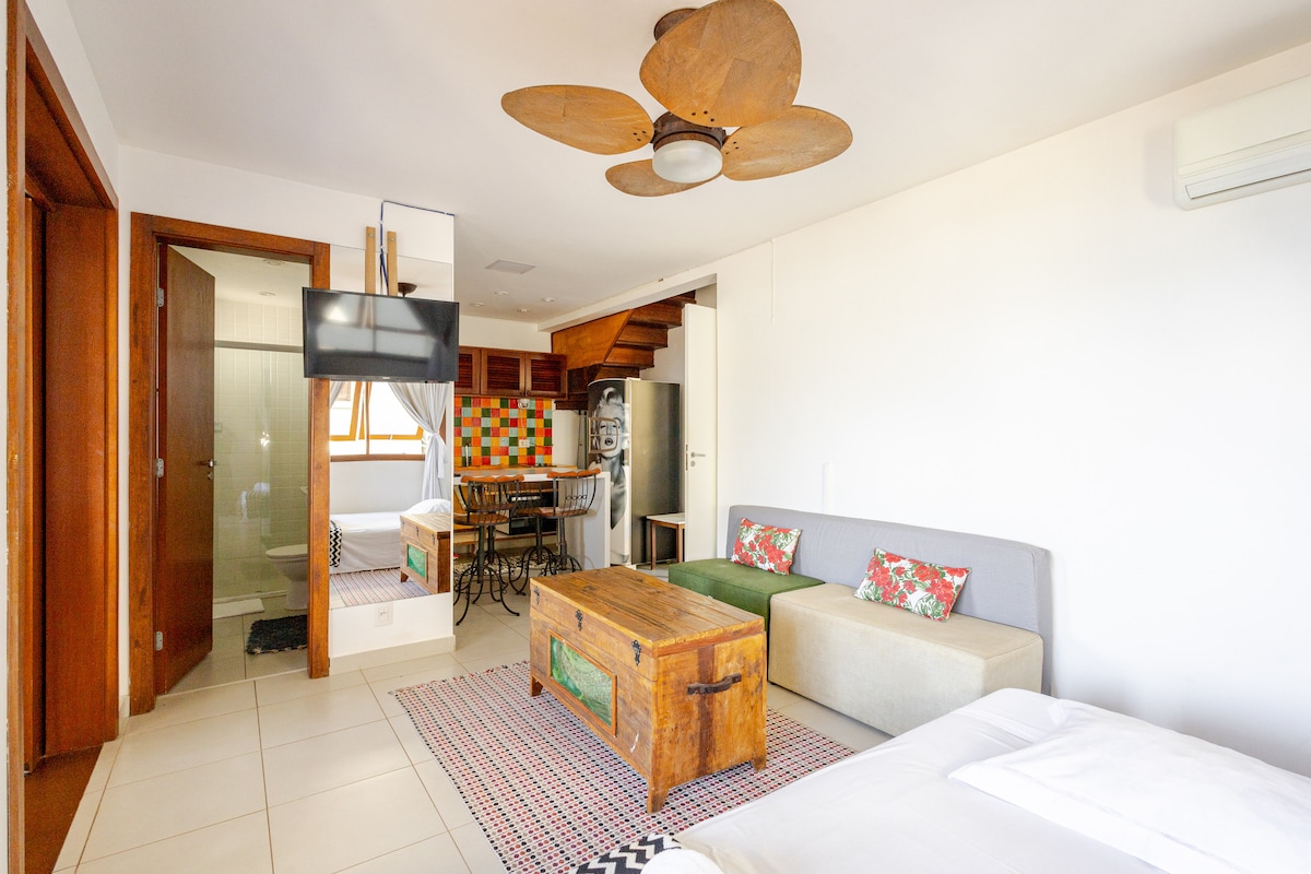 The Flat Island Flat Hotel - ը գտնվում է Perequê լողափի անմիջապես դիմաց և շատ մոտ է Իլհաբելայի կենտրոն հանդիսացող գյուղին ։ Ilha Flat - ն ունի մեծահասակների և մանկական լողավազան, թենիսի կորտ, բար, ռեստորան, շոգեբաղնիք և ընդարձակ ավտոկայանատեղի: Մեր բնակարան n° 2110 - ը լավագույններից մեկն է ՝ հարմարավետ երկտեղանի մահճակալով, բազմոց ՝ 2 իրական մահճակալներով (ՍՐԲԻՉՆԵՐԸ և ԱՆԿՈՂՆԱՅԻՆ ՍՊԻՏԱԿԵՂԵՆԸ ՆԵՐԱՌՎԱԾ են), Smart TV 43 "- ը ՝ Sky - ով, սեղանով, միկրոալիքային վառարանով, միկրոալիքային վառարանով, սրճեփով և խոհանոցային տարբեր պարագաներով: Ունի օդորակիչ և առաստաղի օդափոխիչ: